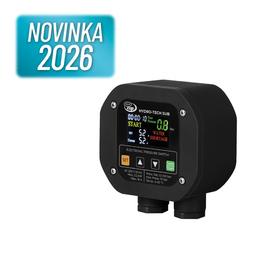Automatically controls pump operation based on detected water source status, consumption and line pressure change. Completely replaces traditional control systems using both a hydrostat and a conventional pressure switch. Another benefit is dry-running protection and real-time pressure visualization on a digital display (see page 9).