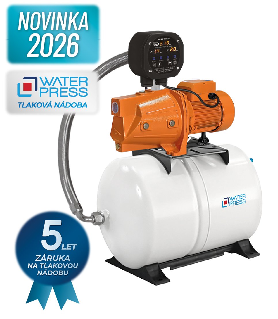 Automatic booster set equipped with Hydro-TECH intelligent control unit with integrated LCD LED display displaying the pressure value in real time. Simple setting of on / off pressure, dry running monitoring. booster set with a high quality self-priming cast iron pump and membrane pressure vessel of 24 to 80 liters.