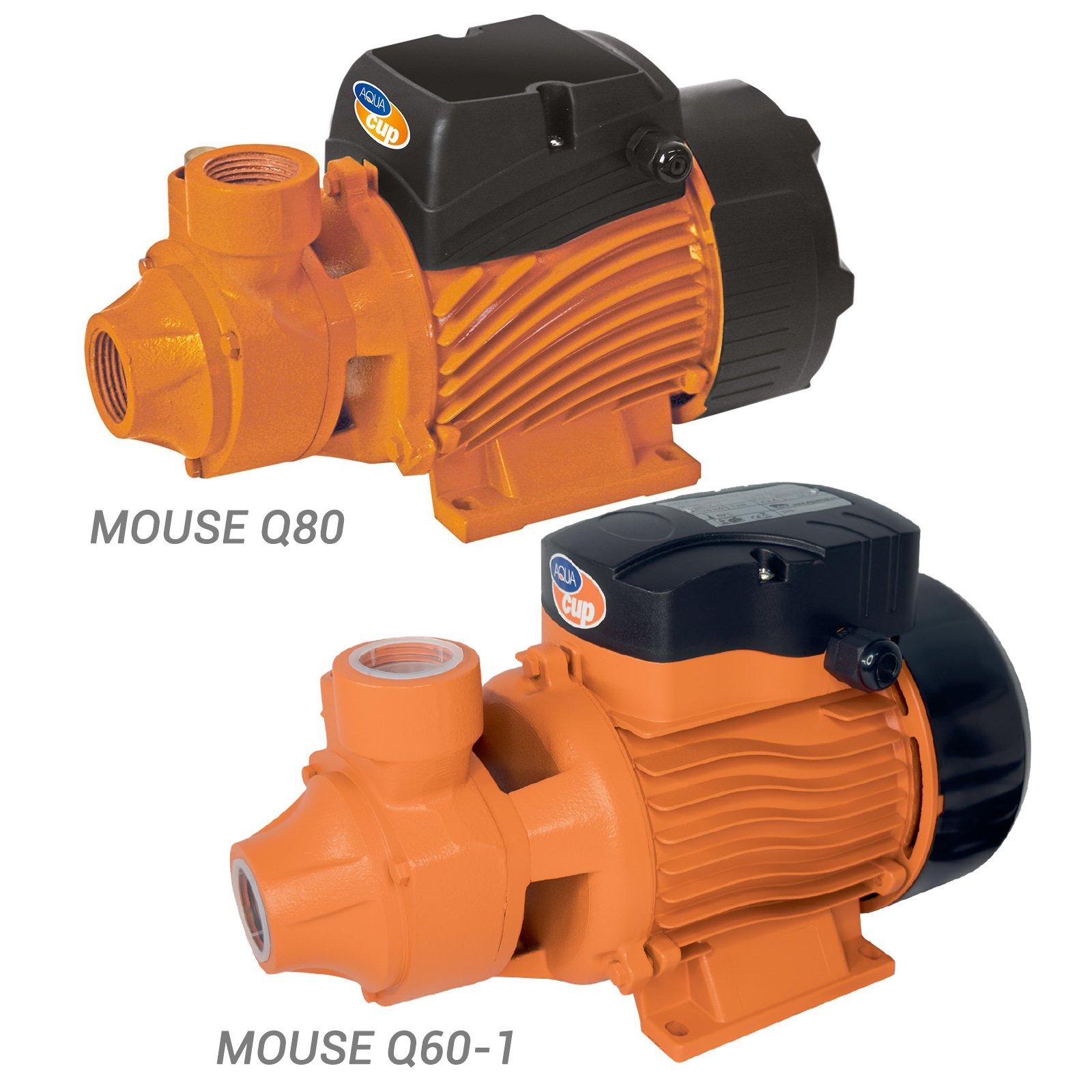 Centrifugal pumps with built-in thermal protection in the motor winding. Pump housing made of cast iron, brass impeller and copper winding.